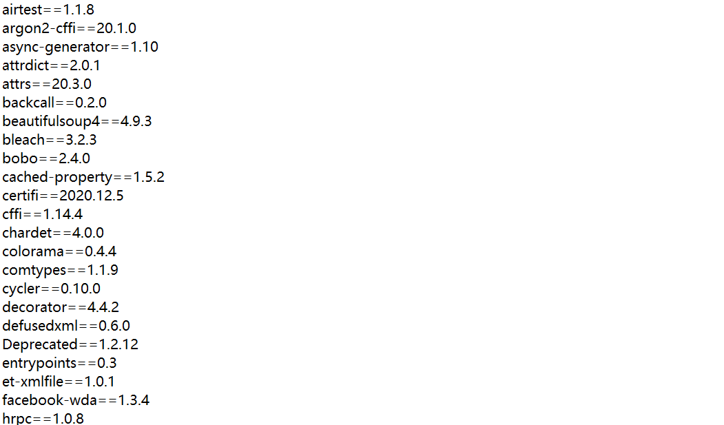 作用:查看 Python 通过 pip 安装的所有包(不包括 pip 包本身)。