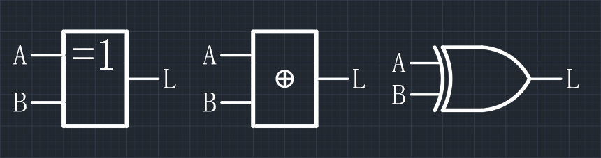 - 逻辑表达式:$L = A \oplus B = A \overline{B} + \overline{A} B$