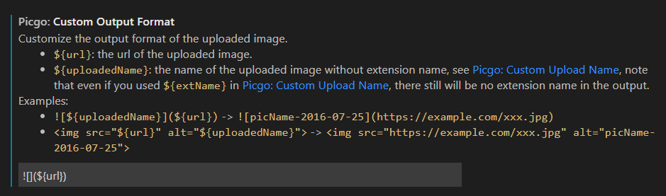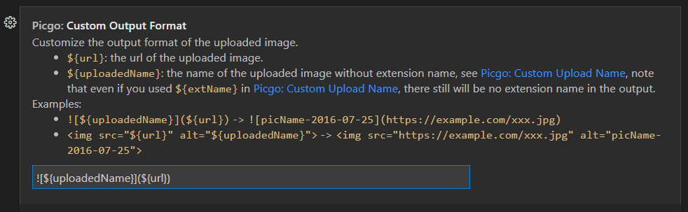 这是原来的设置,它会在 [] 内默认填充文件名,即 PicGo 自动给文件赋予的名称。