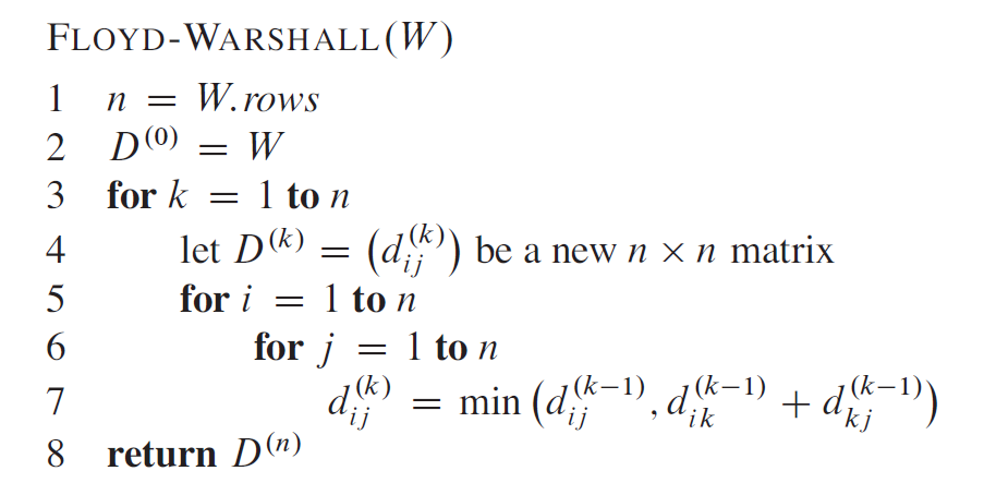 | [0, 3, 8, inf, -4] [inf, 0, inf, 1, 7] [inf, 4, 0, inf, inf] [2, inf, -5, 0, inf] [inf, inf, inf, 6, 0] --------- [0, 3, 8, inf, -4] [inf, 0, inf, 1, 7] [inf, 4, 0, inf, inf] [2, 5, -5, 0, -2] [inf, inf, inf, 6, 0] --------- [0, 3, 8, 4, -4] [inf, 0, inf, 1, 7] [inf, 4, 0, 5, 11] [2, 5, -5, 0, -2] [inf, inf, inf, 6, 0] --------- [0, 3, 8, 4, -4] [inf, 0, inf, 1, 7] [inf, 4, 0, 5, 11] [2, -1, -5, 0, -2] [inf, inf, inf, 6, 0] --------- [0, 3, -1, 4, -4] [3, 0, -4, 1, -1] [7, 4, 0, 5, 3] [2, -1, -5, 0, -2] [8, 5, 1, 6, 0] --------- [0, 1, -3, 2, -4] [3, 0, -4, 1, -1] [7, 4, 0, 5, 3] [2, -1, -5, 0, -2] [8, 5, 1, 6, 0] --------- =================================================== [None, 1, 1, None, 1] [None, None, None, 2, 2] [None, 3, None, None, None] [4, None, 4, None, None] [None, None, None, 5, None] --------- [None, 1, 1, None, 1] [None, None, None, 2, 2] [None, 3, None, None, None] [4, 1, 4, None, 1] [None, None, None, 5, None] --------- [None, 1, 1, 2, 1] [None, None, None, 2, 2] [None, 3, None, 2, 2] [4, 1, 4, None, 1] [None, None, None, 5, None] --------- [None, 1, 1, 2, 1] [None, None, None, 2, 2] [None, 3, None, 2, 2] [4, 3, 4, None, 1] [None, None, None, 5, None] --------- [None, 1, 4, 2, 1] [4, None, 4, 2, 1] [4, 3, None, 2, 1] [4, 3, 4, None, 1] [4, 3, 4, 5, None] --------- [None, 3, 4, 5, 1] [4, None, 4, 2, 1] [4, 3, None, 2, 1] [4, 3, 4, None, 1] [4, 3, 4, 5, None] --------- 节点1到节点1的最短路径为: 1 节点1到节点2的最短路径为: 1 5 4 3 2 节点1到节点3的最短路径为: 1 5 4 3 节点1到节点4的最短路径为: 1 5 4 节点1到节点5的最短路径为: 1 5 节点2到节点1的最短路径为: 2 4 1 节点2到节点2的最短路径为: 2 节点2到节点3的最短路径为: 2 4 3 节点2到节点4的最短路径为: 2 4 节点2到节点5的最短路径为: 2 4 1 5 节点3到节点1的最短路径为: 3 2 4 1 节点3到节点2的最短路径为: 3 2 节点3到节点3的最短路径为: 3 节点3到节点4的最短路径为: 3 2 4 节点3到节点5的最短路径为: 3 2 4 1 5 节点4到节点1的最短路径为: 4 1 节点4到节点2的最短路径为: 4 3 2 节点4到节点3的最短路径为: 4 3 节点4到节点4的最短路径为: 4 节点4到节点5的最短路径为: 4 1 5 节点5到节点1的最短路径为: 5 4 1 节点5到节点2的最短路径为: 5 4 3 2 节点5到节点3的最短路径为: 5 4 3 节点5到节点4的最短路径为: 5 4 节点5到节点5的最短路径为: 5